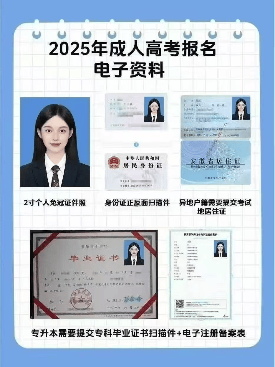 上传材料:身份证原件照片、专升本考生需上传专科结业证或学信网《教育部学历证书电子注册存案表》、外埠考生需上传安徽省栖身证或近3个月社保/个税缴纳证明。系统从动审核,1-3个工做日反馈成果。通过者进入缴费环节;未通过者需正在9月10日17!00前弥补材料(最多3次),或照顾原件到市级教育招生测验机构现场审核。现役甲士需供给士兵证及部队同意报考据明;港澳居平易近、居平易近、外国需供给响应身份证件及栖身证明。
