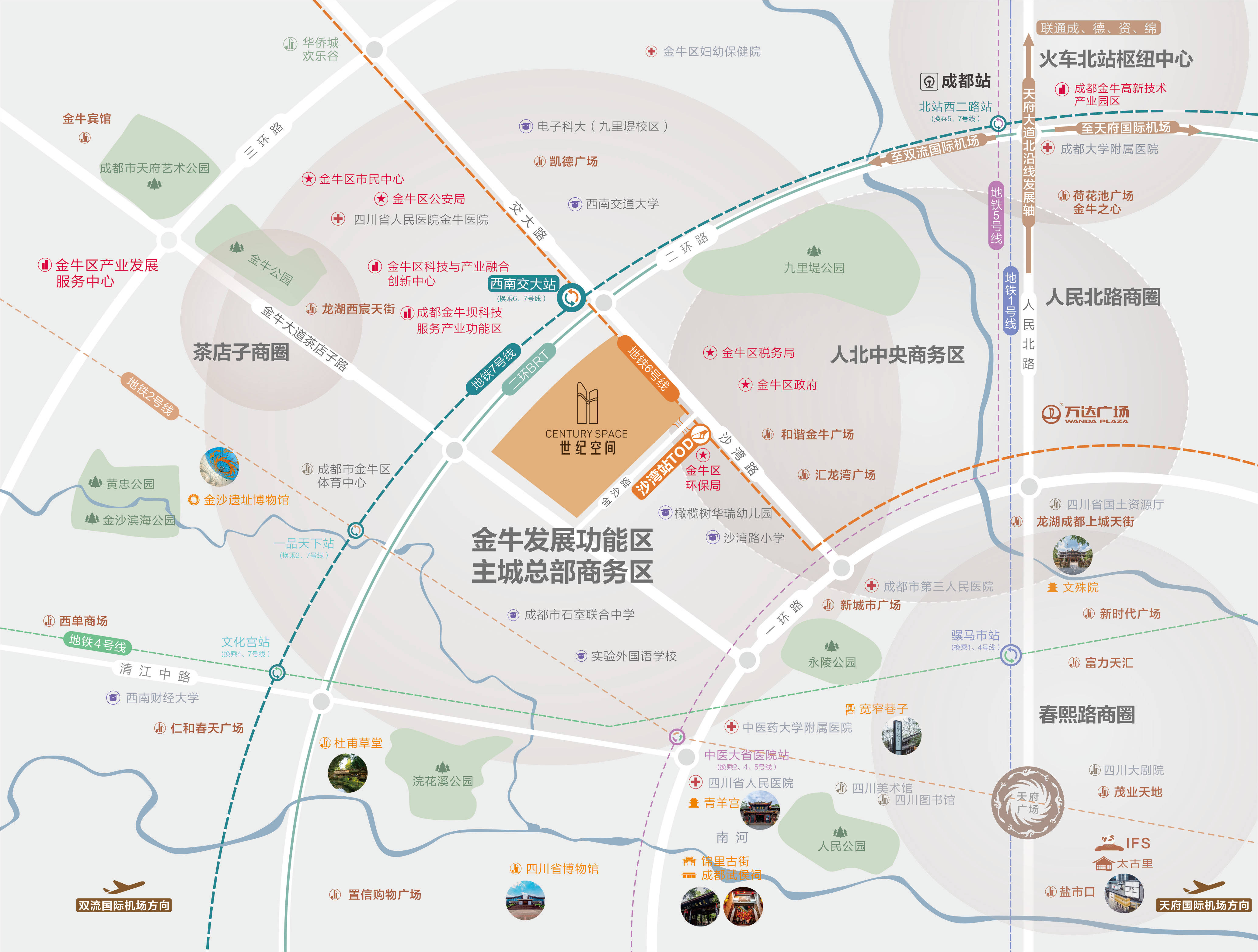 金牛城市更新典型项目,具有全成都最稠密的交通网,三地铁,坐拥沙湾TOD,二环BRT,火车北坐商圈焦点,尽享万万商搭客群!