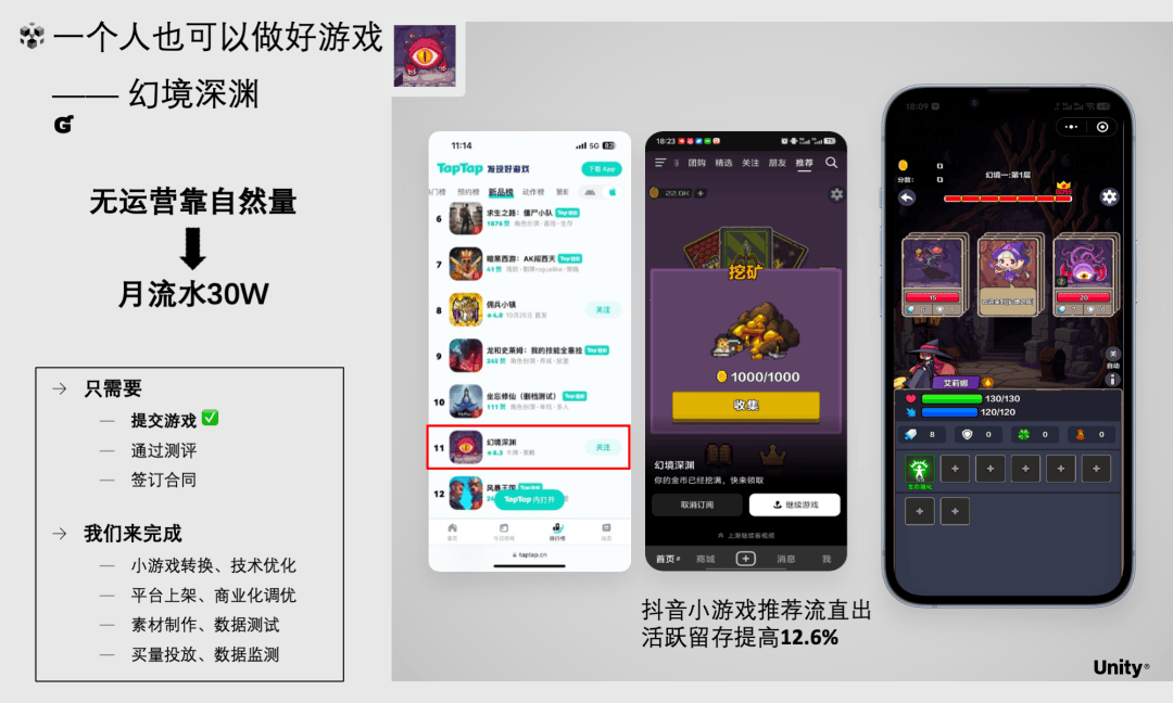 王巍:好比抖音上半年推出的「保举流曲出」功能,用户刷视频时可间接试玩小逛戏,我们是第一批接入的,其时曾为逛戏单日带来数十万新增用户。