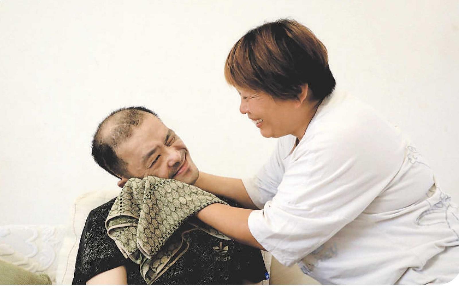 宫金妹说到就会做到。她家楼上的男孩患有抑郁症,已经跳楼。“我带丈夫爬楼熬炼的时候经常去看他,他喜好跟我聊天。”可能是多年来照应丈夫的履历让宫金妹取病人及家眷有更多共识。“我会告诉他们,生病没什么大不了的,要有决心降服坚苦,好日子正在后头呢。”宫金妹说。