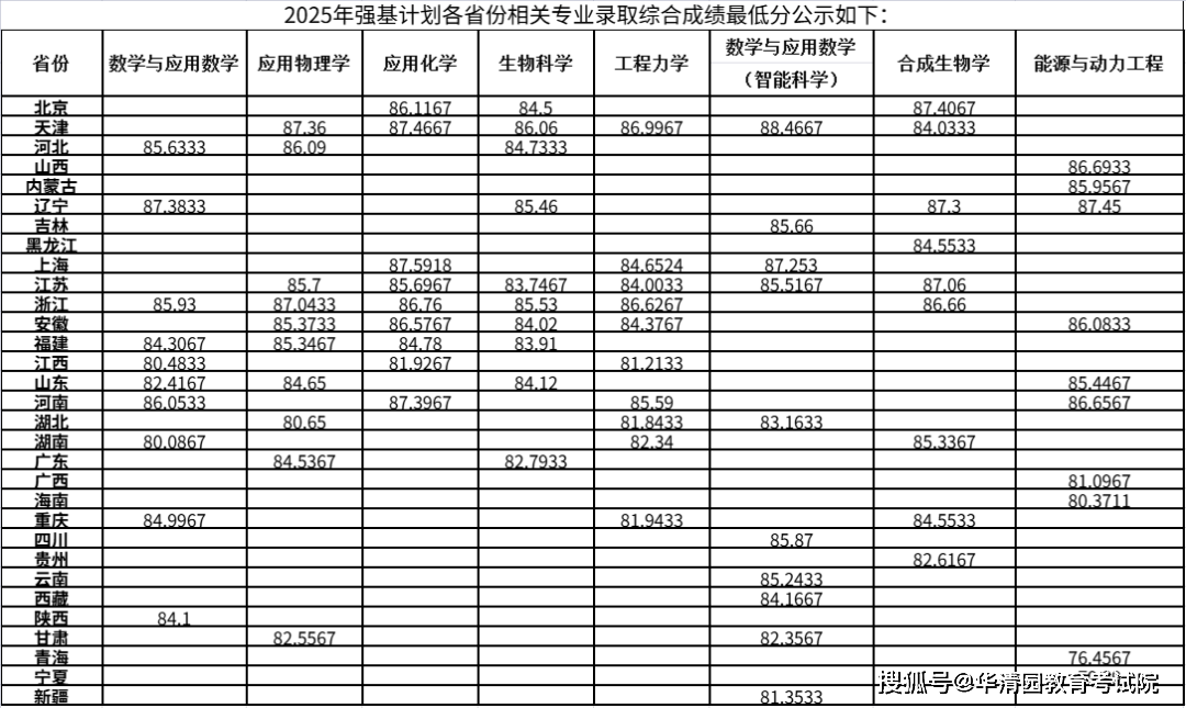 以下是2025年强基打算各省份相关专业登科分析成就最低分公式,因登科分数是由高考绩绩取校考绩绩核算后的分析成就,因而参考意义较小,考生家长恰当领会即可。